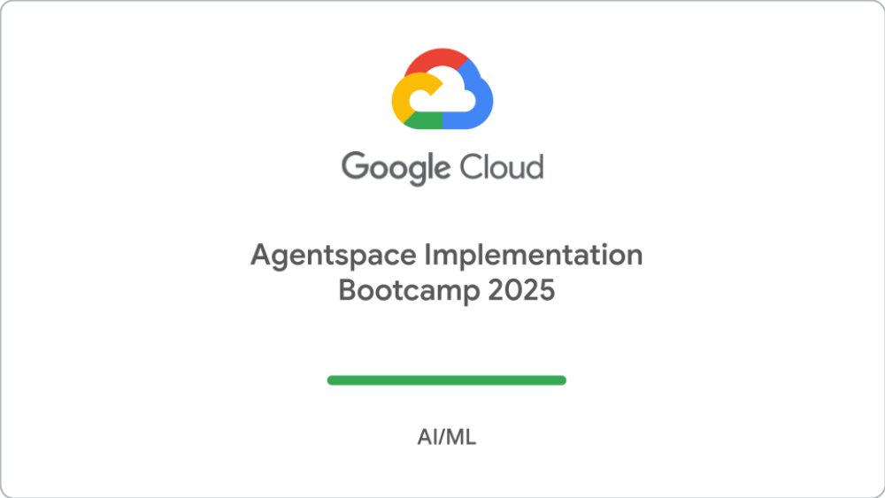 This learning path, designed for customer-facing Googlers in Cloud GTM who are working on Agentspace implementation, will help them better assist customers you are working with in implementing Agentspace. Who should attend? This course is ideal for Googlers in Cloud GTM who are working with customers on Agentspace implementations. By the end of this course, you will be able to assist customers you are working with in implementing Agentspace. Prerequisites In order to fully benefit from this advanced level course, you should complete the following training before attending the Agentspace Implementation Bootcamp: Accelerate Knowledge Exchange with Agentspace (2 hours) - Includes the advanced level Extend Agentspace assistant capabilities with Conversational Agents lab. Deploy Agentspace labs - Use this link to earn the skills badge Includes the Deploy and query Google Agentspace: Learning Lab (1.5 hours) and the Deploy Google Agentspace with Data Stores and an action: Challenge Lab (1.5…