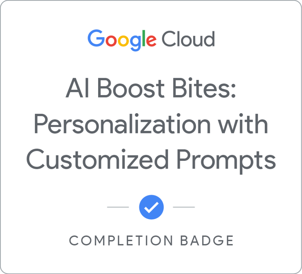 초급 Vertex AI의 프롬프트 설계 기술 배지를 완료하여 Vertex AI 내 프롬프트 엔지니어링, 이미지 분석, 멀티모달 생성형 기술과 관련된 기술 역량을 입증하세요. 효과적인 프롬프트를 만들고 생성형 AI 출력을 안내하며 실제 마케팅 분야 시나리오에 Gemini 모델을 적용하는 방법을 알아보세요. 기술 배지는 Google Cloud 제품 및 서비스 숙련도에 따라 Google Cloud에서 독점적으로 발급하는 디지털 배지로, 기술 배지 과정을 통해 대화형 실습 환경에서 지식을 적용하는 역량을 테스트할 수 있습니다. 이 기술 배지 과정과 최종 평가 챌린지 실습을 완료하면 네트워크에 공유할 수 있는 기술 배지를 받을 수 있습니다.